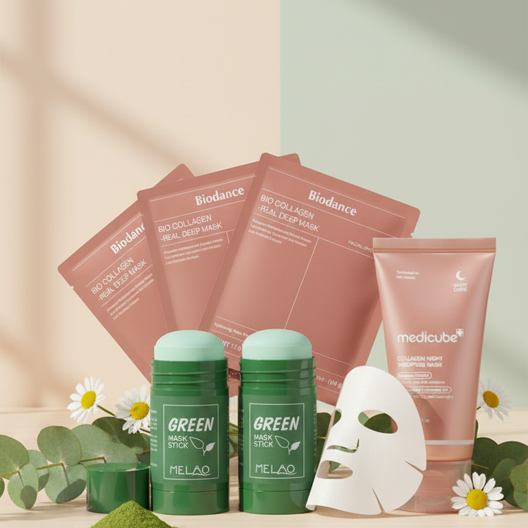 Découvrez le Masque Stick au Thé Vert 🌿. Il purifie la peau, dissout les points noirs et laisse un teint doux et éclatant 💧. Adapté à tous les types de peau, pour une routine beauté simple et efficace ✨.